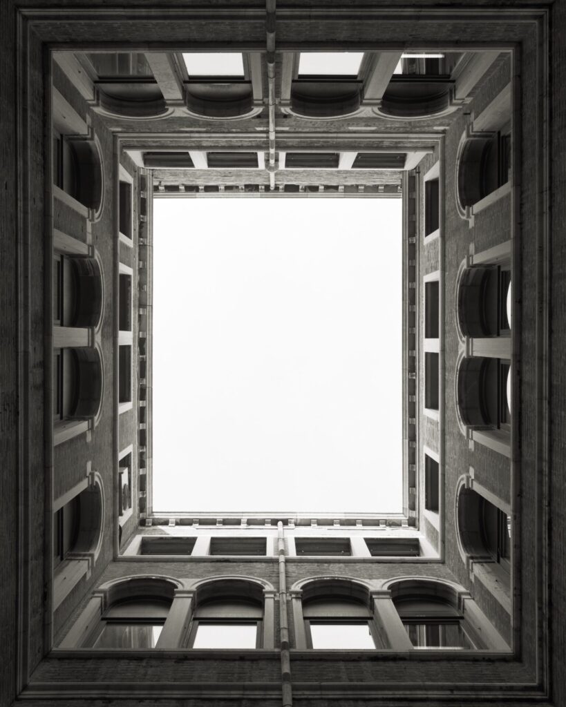 – Den förändras för varje steg. Du kan ta goda tio varv på olika distanser innan du placerar kameran. När jag fotograferar ser jag arkitektur mer som ett skulpturalt fenomen än en byggnad. Plötsligt finns det inget fram eller bak, upp eller ner, säger hon.