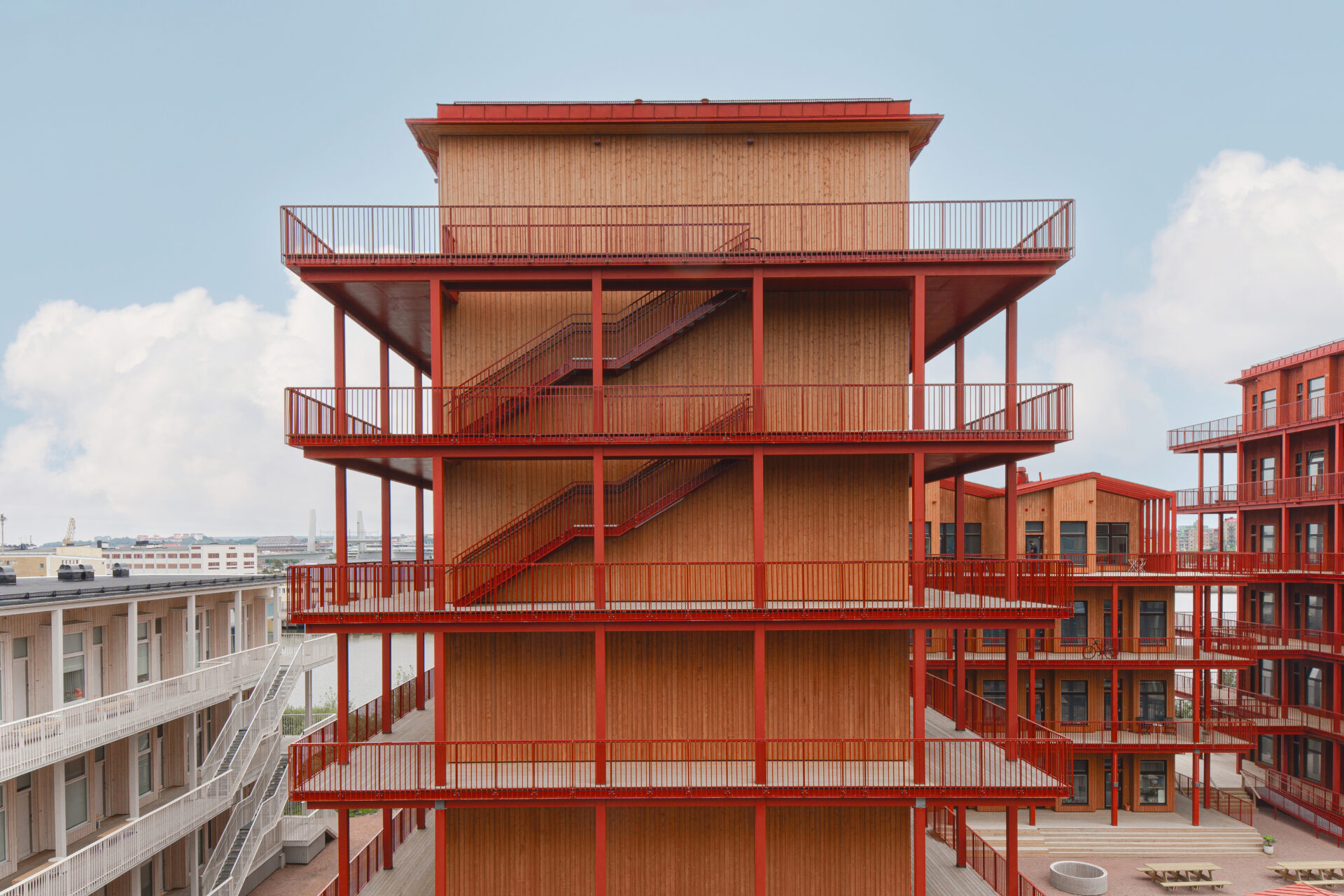 – Jag gillar när djupet i bilden trycks ihop en aning, och det skapas en komposition som kanske inte alltid går att uppleva med blotta ögat. Ofta gör jag en egen tolkning av byggnaden utöver den lista av vinklar som uppdragsgivaren kan skicka med. Det kan handla om en detalj eller en vinkel som jag upptäcker på plats, som till exempel kommunicerar gestaltningsidén av projektet på ett vackert vis rent bildmässigt. I efterhand ser jag ofta att just de bilderna används mest i kundens kommunikation, säger hon.