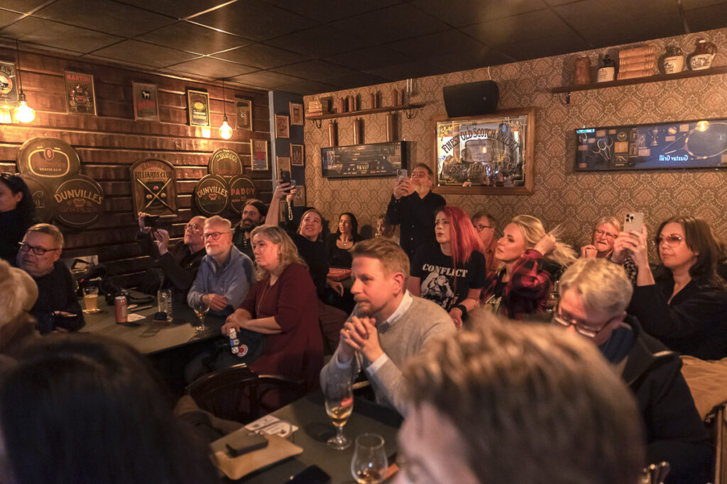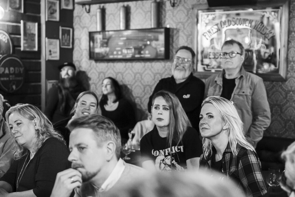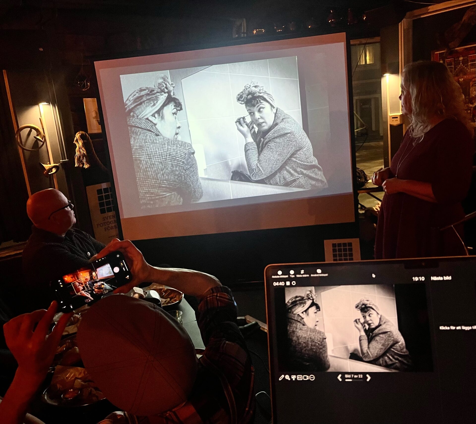 Därefter fortsatte vi in till stan och avslutade på Gröna Älgen med kvällens bildvisning – en bildbar med avslappnad stämning, mat, dryck och tid för samtal. Sex fotografer visade 20 bilder vardera, 20 sekunder per bild, och publiken var djupt engagerad. Lokalen var fylld till sista plats (och lite till!) och stämningen var på topp.