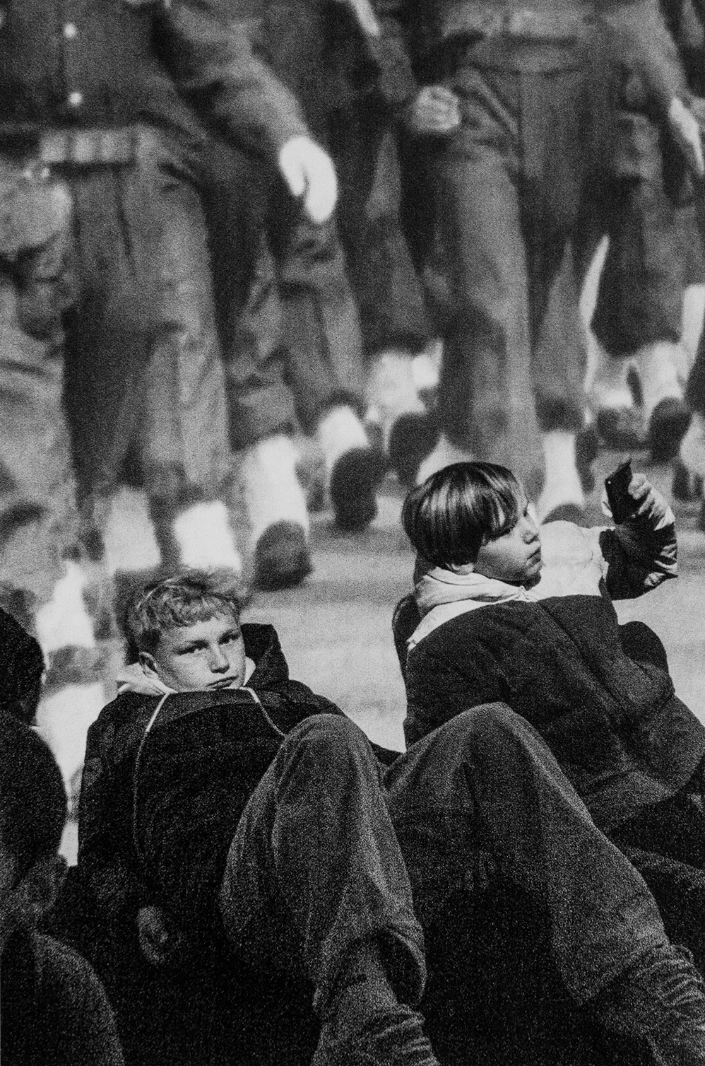 Jag var på väg, och inspirationen gjorde att jag fotade, vilket i sin tur gjorde att jag fick slut på film, så jag behövde gå en omväg till en Kodak Express som låg på andra sidan en stor park. I parken samlades ungdomar som nyss slutat skolan. De satt med sina telefoner eller mackor i händerna, och jag gick förbi en tjej som satt på en mur och grät till någon i telefon, bredvid ett gäng andra tjejer.