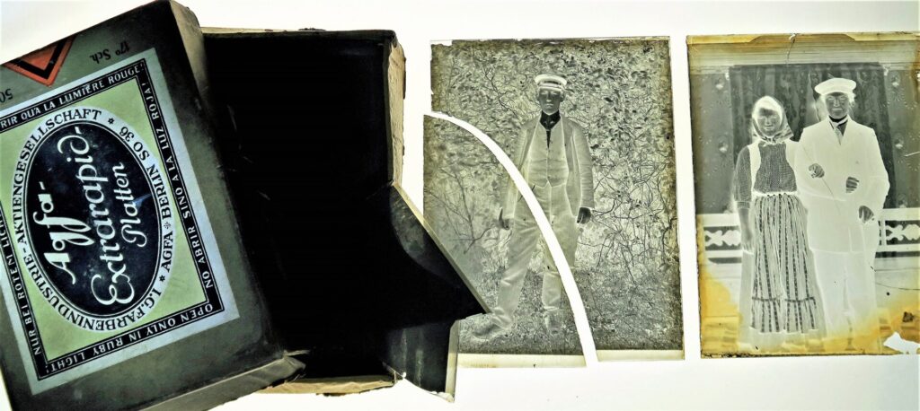 Torrplåt i format 9×12 centimeter från åren runt första världskriget 1914-18. Ofta har negativen förvarats i fabrikantens ursprungliga askar. De innehåller ett dussin plåtar och ger de sköra glasnegativen ett gott skydd. Foto: Björn Axel Johansson
