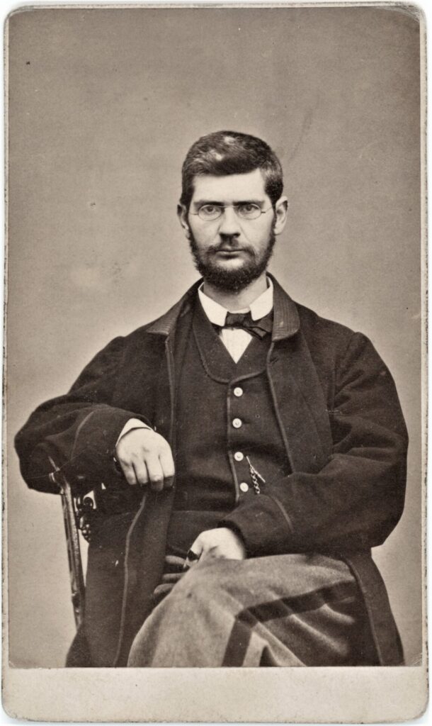 Trettio år gammal kom C. E. Kjellin, son till en kyrkoherde i Kumla, via Uppsala till Vänersborg 1864. Han hade fått plats på stadens telegrafstation. Självporträttet är av den standardiserade typen ”visitkort” i format 6×9 centimeter. Foto: C. E. Kjellin / Bildkälla: Vänersborgs museum
