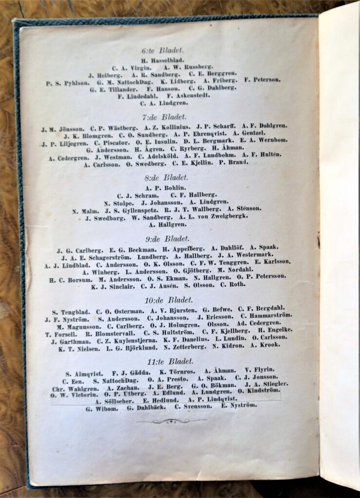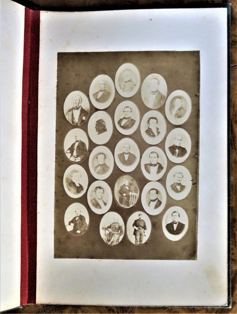 Albumets två avslutande sidor bestod av tryckt text med ett register där samtliga porträtterade namngavs och grupperades enligt den fastställda ordningen.