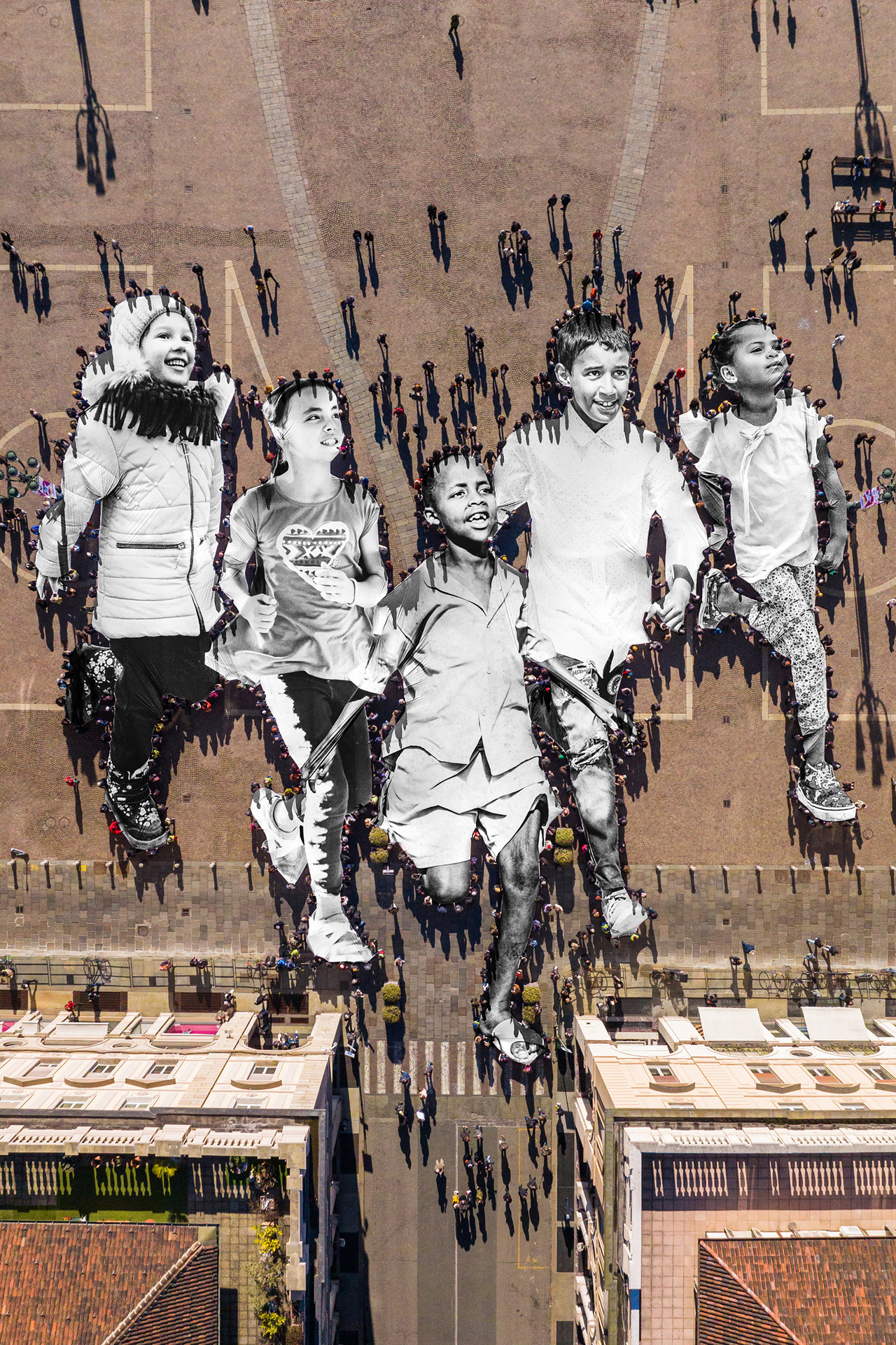 Hans utställning kombinerar fotografi, offentlig konst och socialt engagemang i storskaliga verk. Den handlar om alla de miljontals barn som är på flykt världen över på grund av förföljelse, krig, klimatkatastrofer och kränkningar av mänskliga rättigheter. Under öppningsveckan kommer JR:s projekt Inside Out till Sergels torg. Sedan projektet lanserades 2011 har över 500 000 personer från 152 länder deltagit i projektet som går ut på att deltagarna tar storskaliga svartvita porträtt som sedan klistras upp i det offentliga rummet. Läs mer