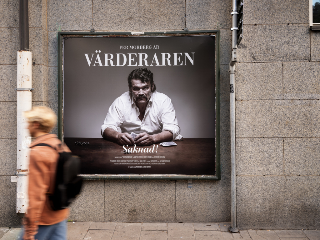 Per Morberg förklarar i telefon att han vill att vi gör en fiktiv filmaffisch på en verklighetsbaserad historia som han har varit involverad i under Coronapandemins nedstängningar. Ju mer han berättar om ”Tavel-Tompa” desto mer fascinerad blir jag. Hela historien bygger på bröderna Martin och Jimmy Lidbergs uppmärksammade bok Brottarbröder och Tavel-Tompa är deras pappa. En storspelare men också en legend i konstvärlden där han fortfarande anlitas för att värdera konst. Per har en idé om att bilden skall tas på någon lämplig lokal med 70-tals vibbar. Jag föreslår att vi gör bilden i min studio. Vi har en knapp vecka att ordna alla detaljer inför fotograferingen. Därefter har vi bara 36 timmar från fotograferingens start till ett färdigt tryckoriginal. Det är i slutet av juli och det brinner i knutarna.