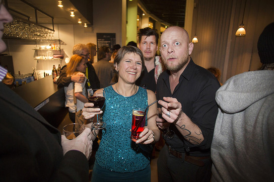 Ylva Zachrisson, Johan Bergmark och Pieter ten Hoopen i baren.